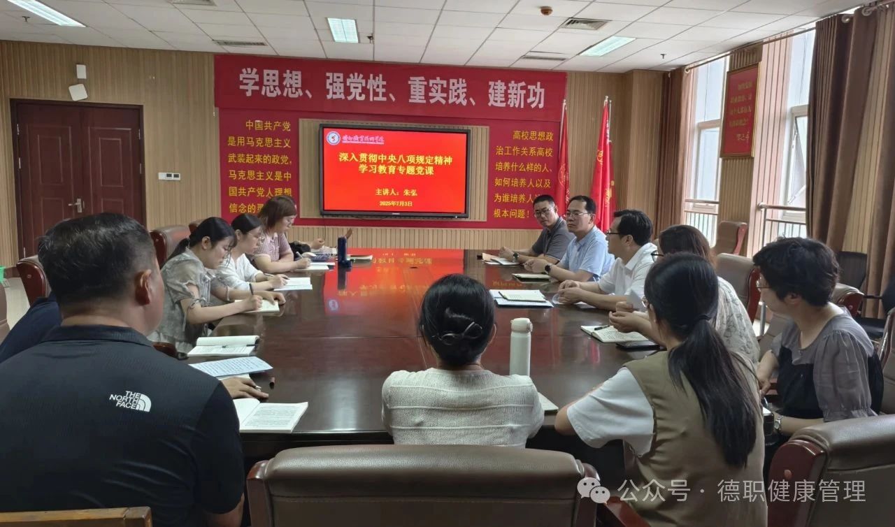 根据学校开展深入贯彻中央八项规定精神学习教育工作方案安排,7月4日,校党委委员、党政办公室主任、宣传部部长朱弘以《作风建设要常抓不懈》为题,为beat365会员官方网站全体党员讲授专题党课。beat365会员官方网站党总支书记范轶、 副书记王英博,全体党员参加学习。