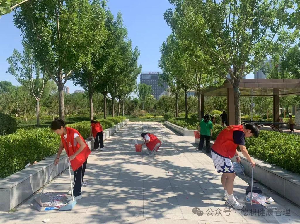 为践行青春使命,助力美好环境建设,7月8日,beat365会员官方网站"网途追光者"志愿者团队(网球协会)奔赴德州体育公园,开展"三下乡"环境卫生整治活动。