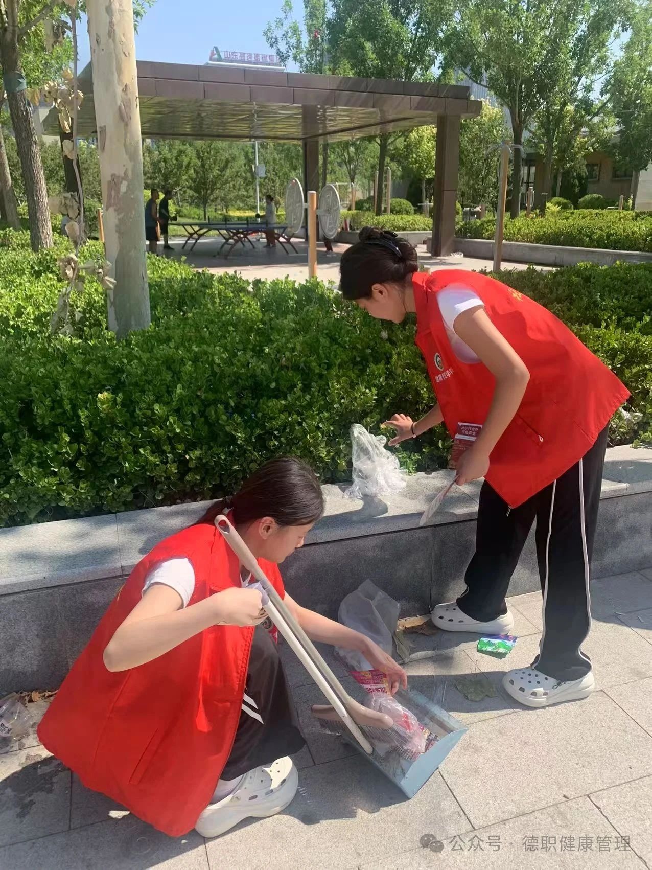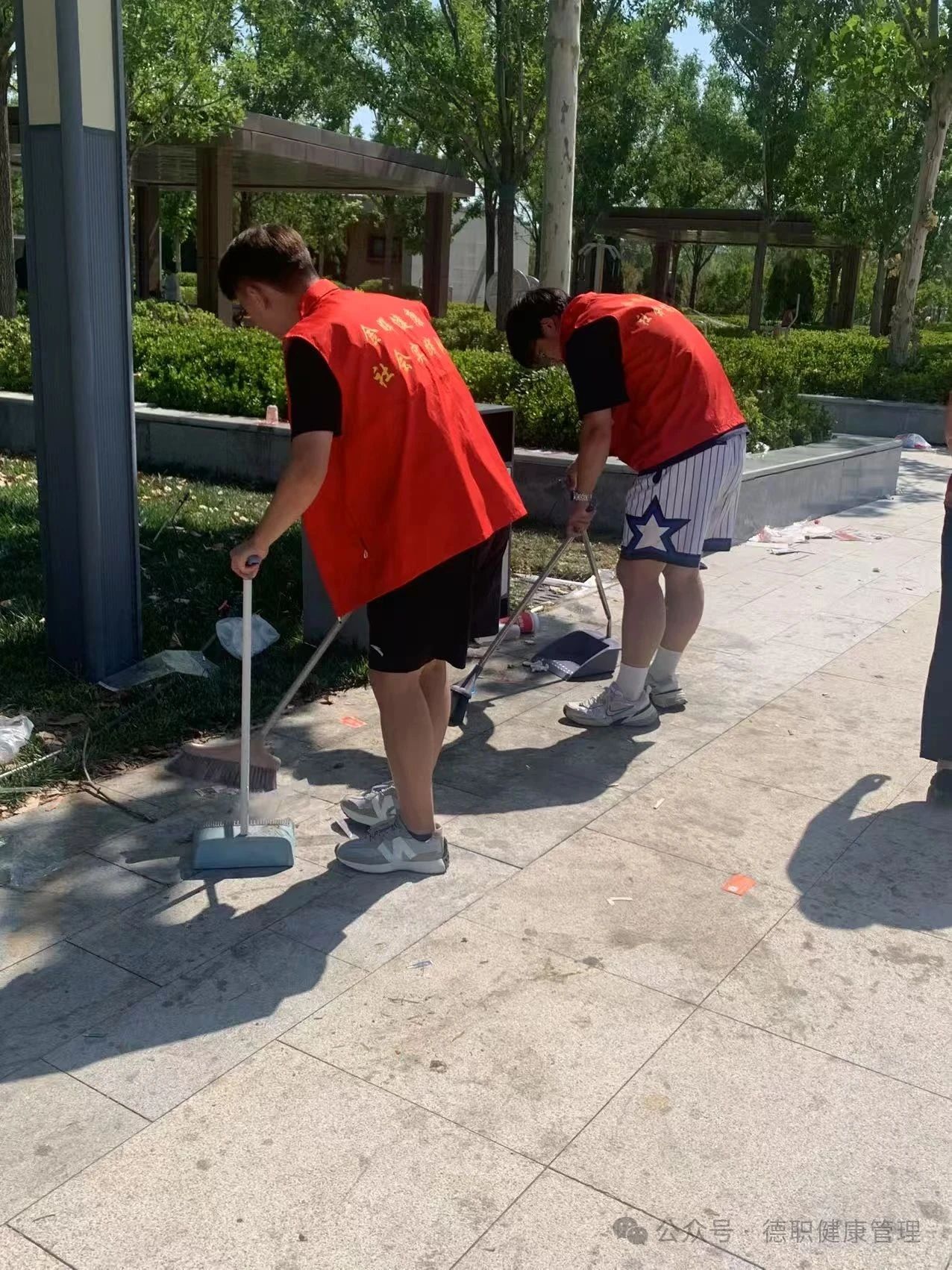 活动现场,志愿者们身着统一红马甲,成为公园中一抹亮眼的青春色。他们手持清扫工具,对公园路面、绿化带等区域进行细致清理,不放过烟头、纸屑、塑料瓶等任何垃圾,用实际行动为公园"梳妆"。