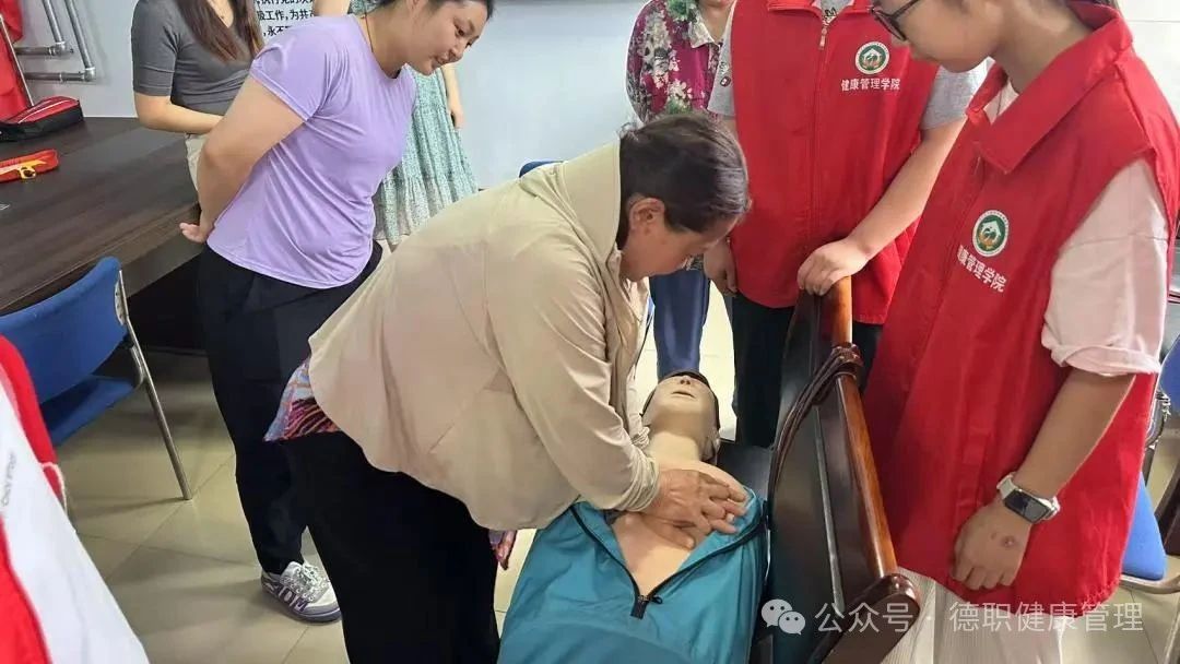 活动现场,社团成员结合PPT图文讲解AED使用原理、模拟演示和互动实操相结合的方式,用通俗语言向居民讲解心脏骤停的黄金救援流程,并借助人体模型手把手指导胸外按压、人工呼吸及AED操作步骤。居民们踊跃参与练习,志愿者逐一纠正动作细节,确保急救技能规范掌握。