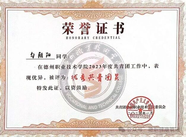 2024年1月,获得优秀共青团员