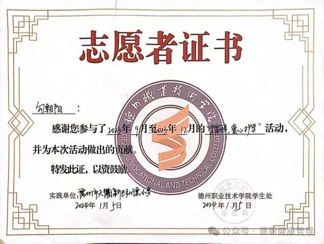 2024年1月,获得优秀志愿者