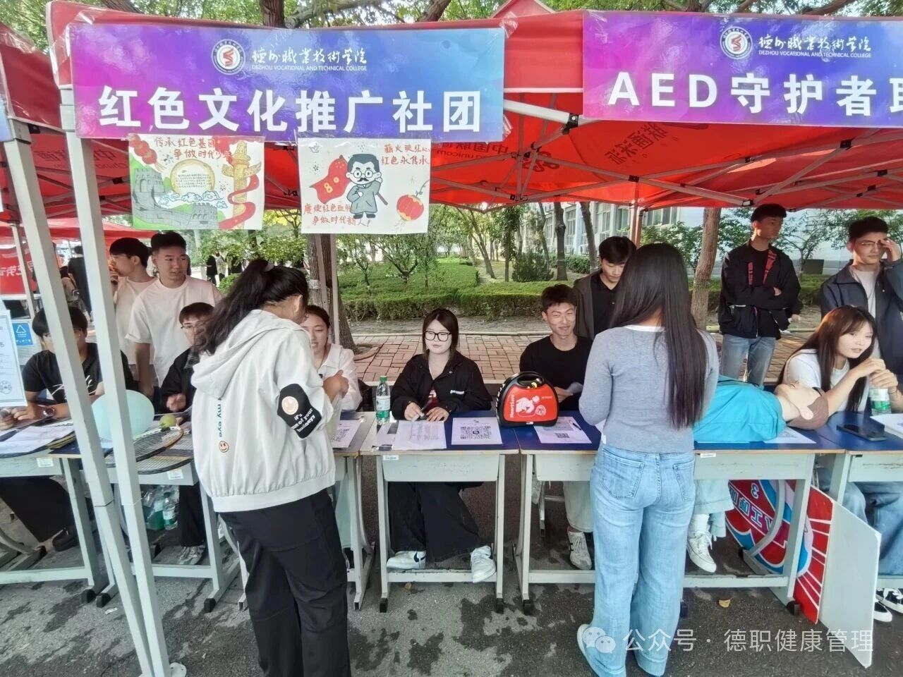 本次纳新中,学院7个特色社团集体亮相:红色文化推广社团传递红色精神,毽球俱乐部、网球社团展现运动活力,健康饮食艺术协会分享饮食健康知识,时尚表演社团彰显青春风采,AED守护者联盟普及急救技能,金晖健康志愿者社团倡导公益服务,丰富的展示内容不仅全面呈现了各社团的特色,更让在场同学踊跃咨询、积极报名,现场氛围十分热烈。