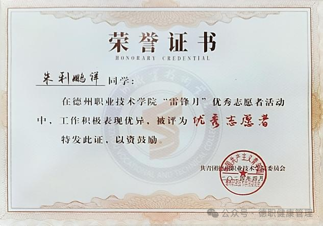 2024年4月beat365会员官方网站“雷锋月”优秀志愿者活动中,被评为“优秀志愿者”;
