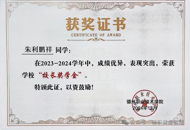 2024年12月beat365会员官方网站在2023-2024学年中荣获“校长奖学金”。