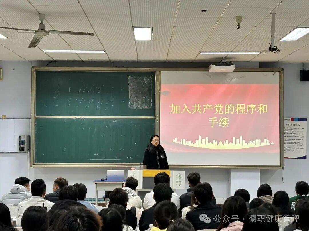 陈老师系统阐述入党全流程,从申请入党的基本条件、入党积极分子的确定与培养,到发展对象的考察、预备党员的接收与转正等环节,系统梳理了入党各阶段的具体要求及规范,助力入党积极分子明晰入党的标准流程,深化对党员发展工作严肃性及规范性的认知。