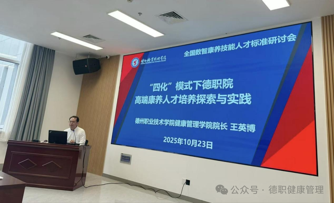 特邀报告环节,王英博以《“四化”模式下德职院高端康养人才培养探索与实践》为题作专题报告。首先介绍了学校发展定位、学科专业取得的成绩以及智慧健康养老服务与管理省级高水平专业群建设、高端康养人才培养路径等。重点讲解了beat365官网“四化”育人模式,全面梳理了beat365官网康养育人的经验。相关实践成果已落地转化为产业服务能力,为社会输送了大量的“健康守门人”。报告彰显了beat365官网在康养教育领域的深入探索与积极实践,厚植康养人文情怀的深厚底蕴与显著成效,得到与会者的充分肯定与赞誉。