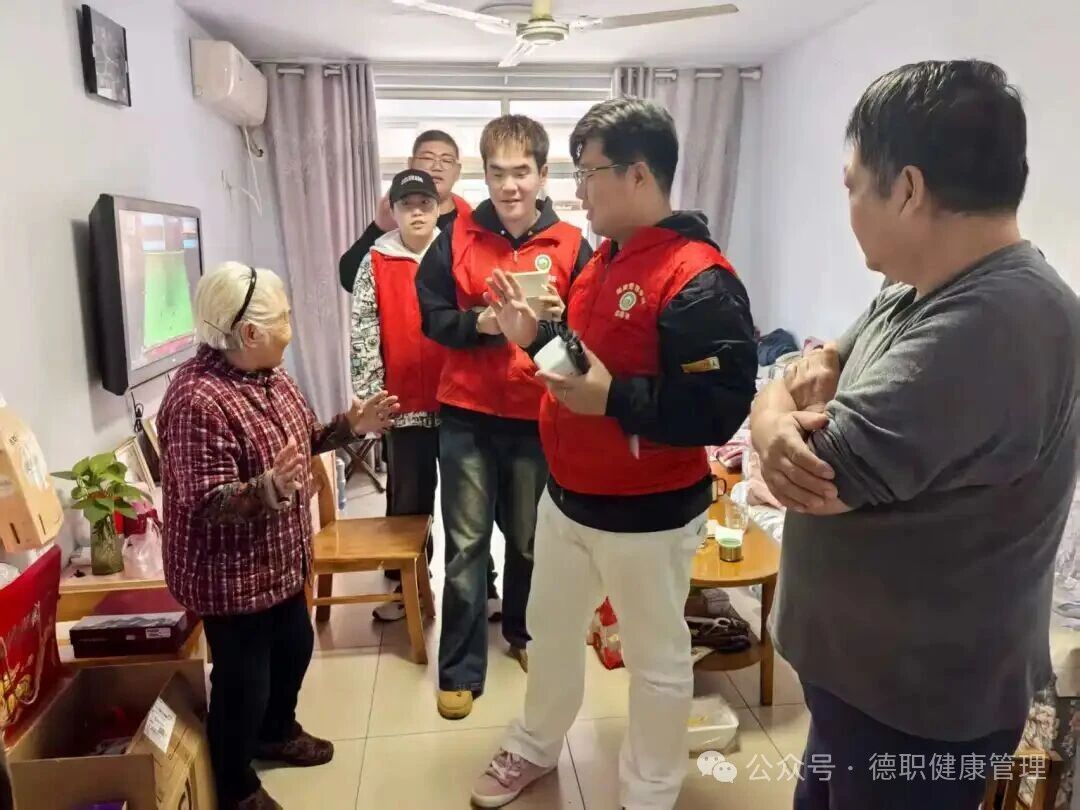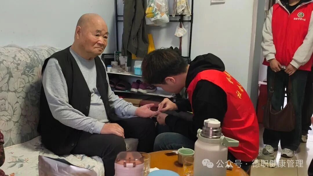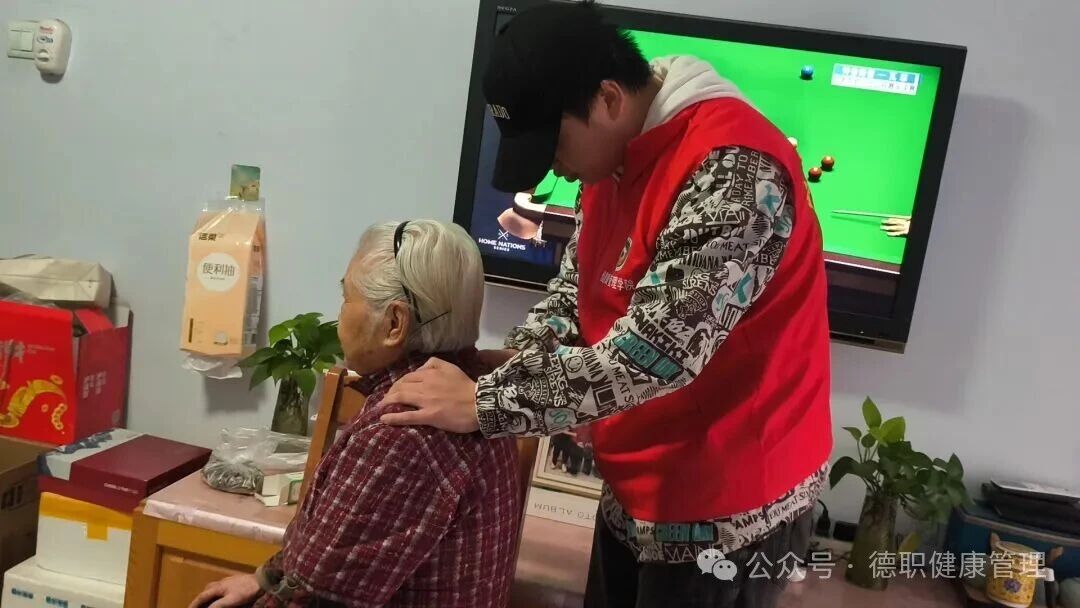 此次服务中,队伍里增添了一张朝气蓬勃的新面孔——2025级新生徐梁浩。他主动请缨,运用娴熟的推拿手法为赵奶奶放松身体。专业的手法、细致的服务,赢得了老人不停地称赞,也为这份延续的关怀注入了新的活力。