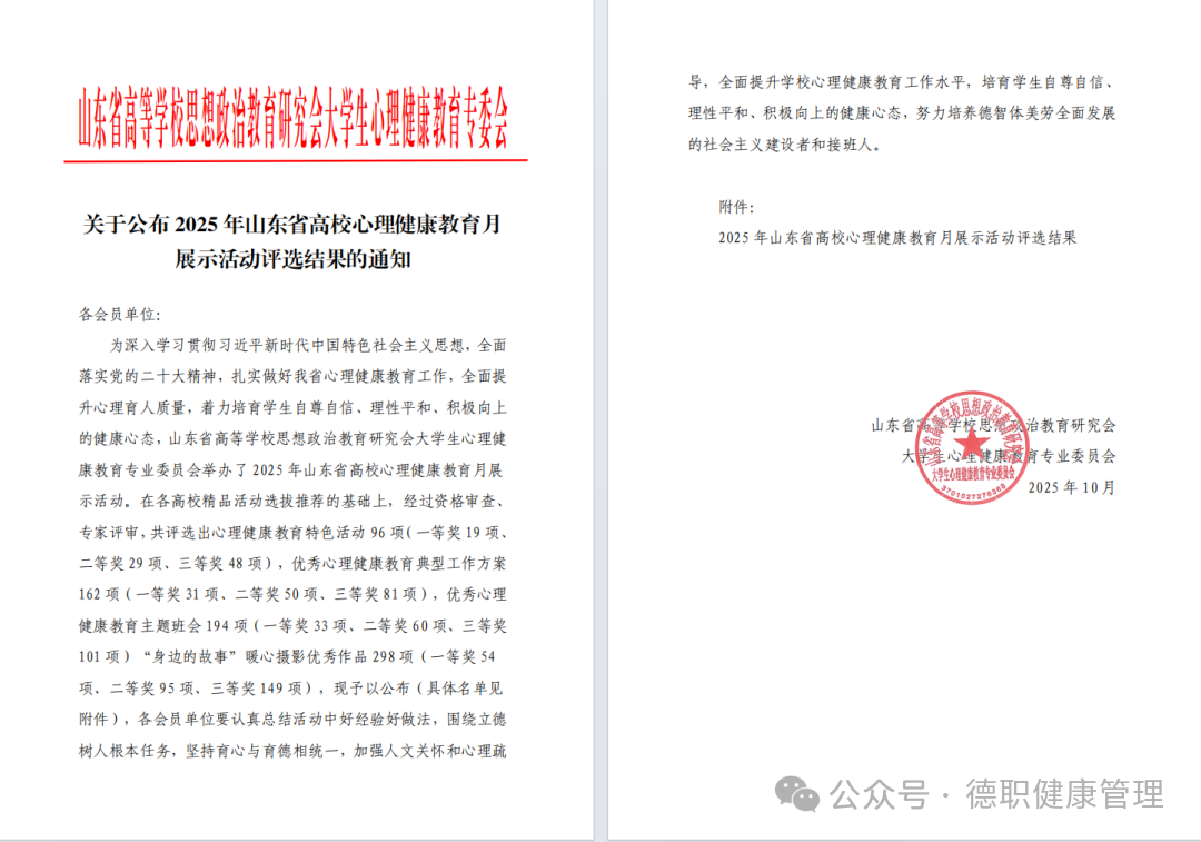 近日,2025年山东省高校心理健康教育月系列活动评选结果正式揭晓,beat365官网师生凭借扎实的专业能力与饱满的参与热情崭露头角,表现突出,成功斩获省级三等奖,荣膺佳绩!