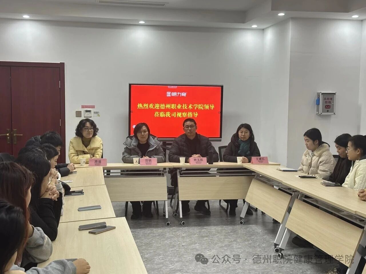 在槐荫明力奇中医门诊部,学院一行先实地参观企业场所,了解各部门运营概况,随后与实习生开展座谈交流。座谈中,范轶书记一行细致询问实习生的工作内容、实践收获、生活近况及遇到的问题,耐心为大家答疑解惑,勉励同学们珍惜实习机会,将专业知识与岗位实操紧密结合,在实践中积累经验、锤炼本领,同时叮嘱大家注意自身安全,保持与学院、企业的密切沟通。