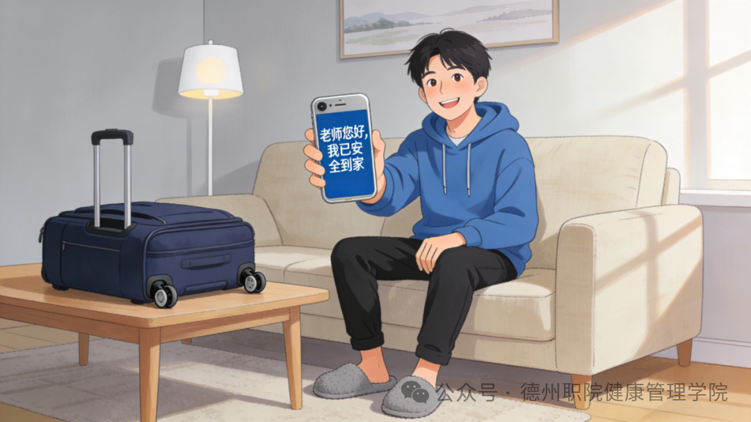 返程途中请保持通讯畅通,遇紧急情况及时与家长或老师联系。安全到家后,请第一时间向辅导员报平安。