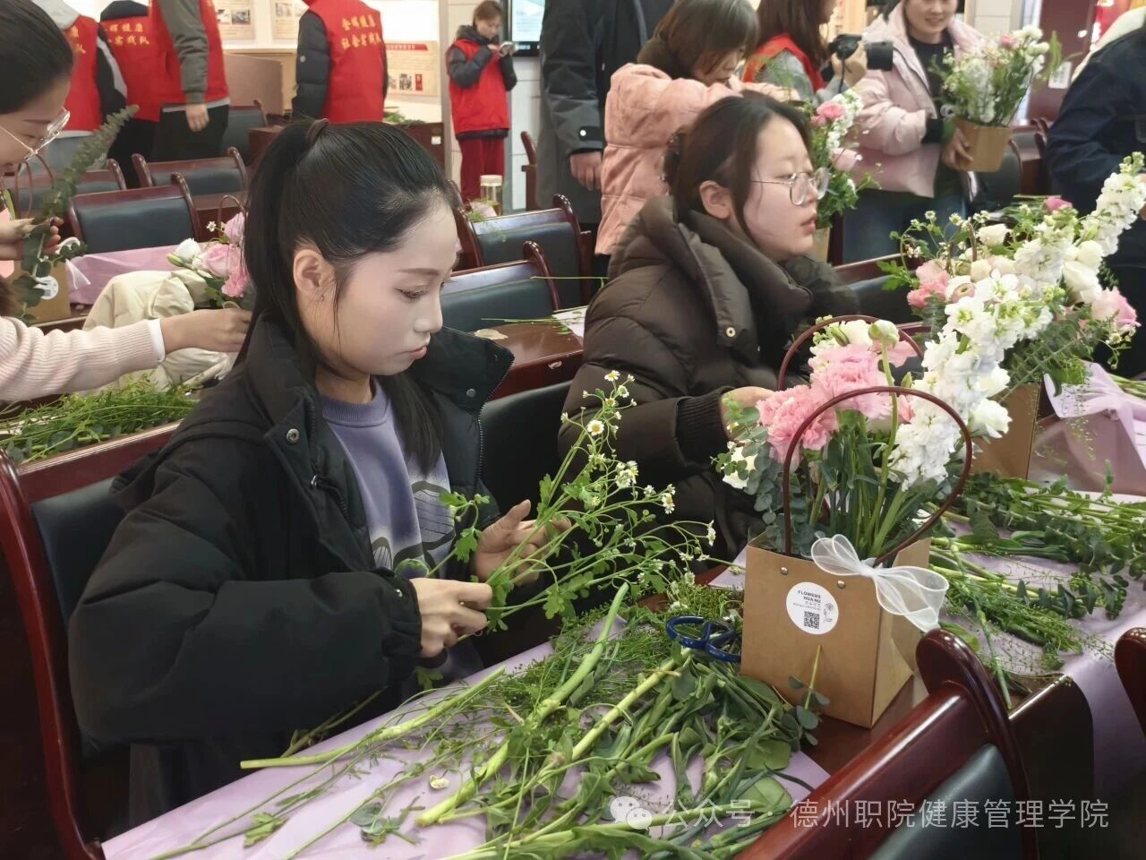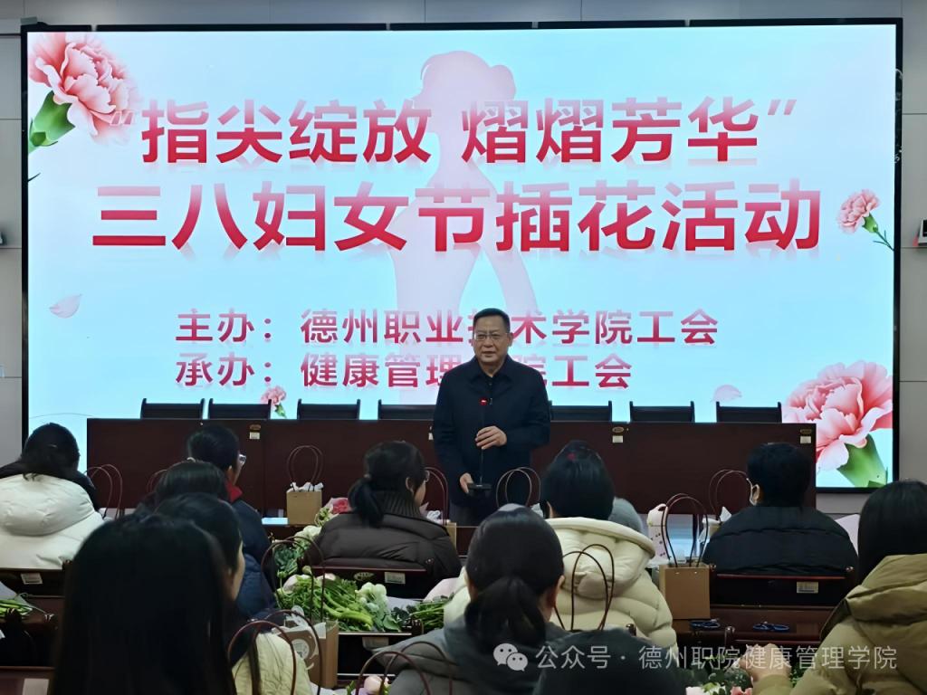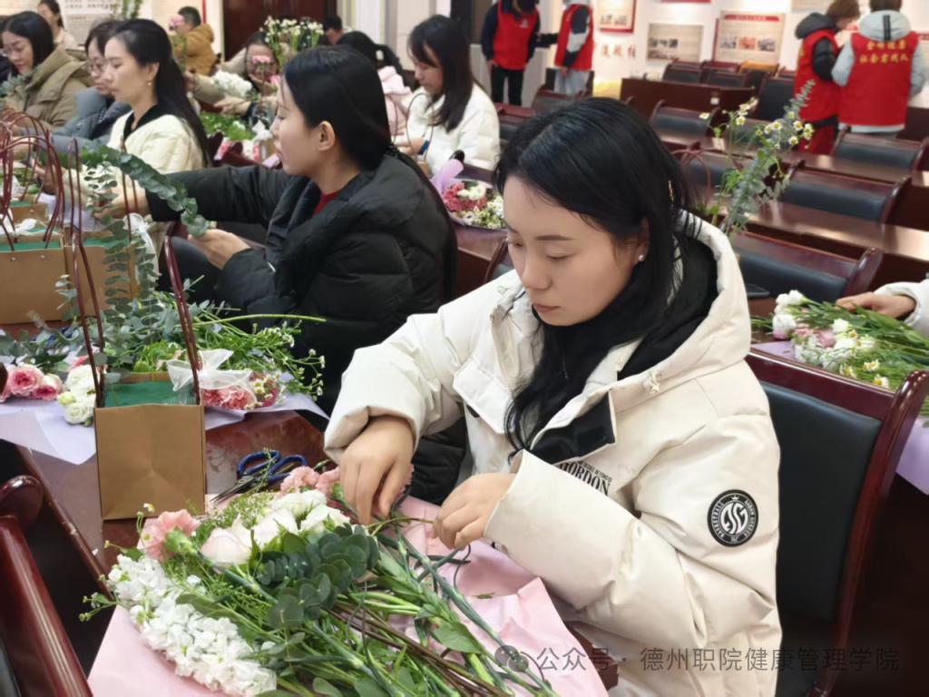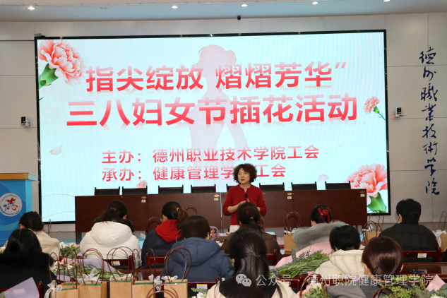 为庆祝第116个“三八”国际妇女节,进一步丰富校园精神文化生活,展现beat365官网女教职工健康优雅、积极向上的时代风采,3月6日,由学校工会主办、beat365会员官方网站工会承办的“花香巾帼,美丽德职”主题插花活动在思齐楼思政VR实践研修基地成功举办。学校党委委员、工会主席刘伟出席活动,全校四十余名女教职工热情参与。
