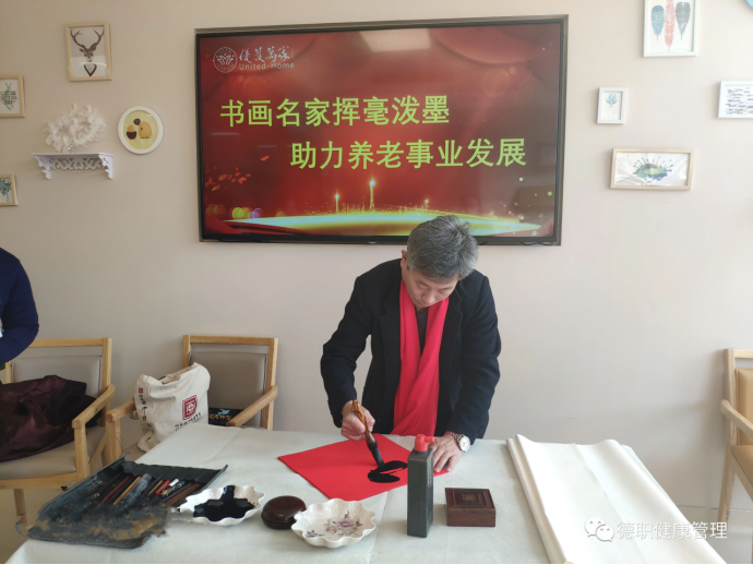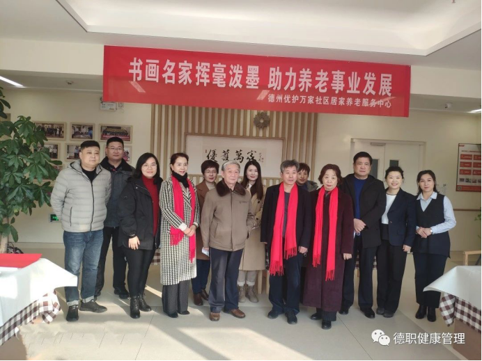 11月27日上午,beat365会员官方网站党支部书记范轶、常务副院长郭吉海去十二里庄校外实训基地德州优护万佳居家养老服务中心参加“书画献爱心 送进敬老院”活动。