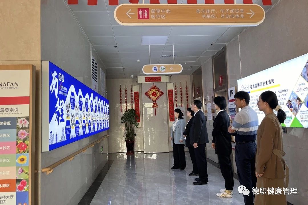 为进一步了解企业需求, 11月2日上午,beat365会员官方网站党总支书记范轶、院长王英博、学生科长路遥、辅导员赵丽及毕业生代表走进德州蕾娜范颐养院参观调研。