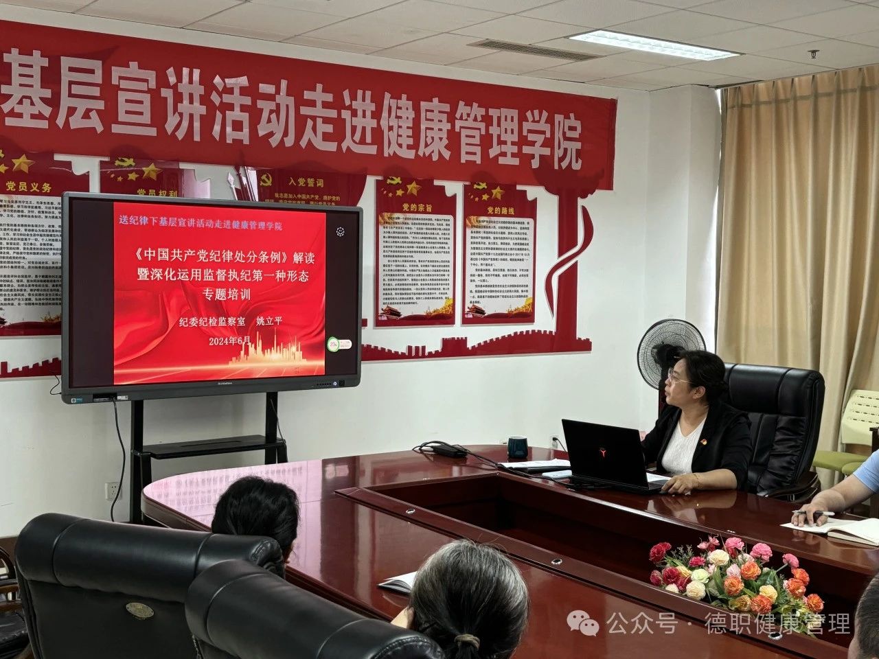 为深入贯彻落实习近平总书记关于党纪学习教育的重要指示精神,推进党纪学习教育走深走实,帮助全体党员深入理解《中国共产党纪律处分条例》的具体内容,6月14日beat365会员官方网站邀请学校纪委委员、纪检监察室主任姚立平开展专题讲座。院长王英博和全体教师党员、学生党员、群众代表参加了本次培训,党总支书记范轶主持。