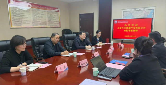 11月13日,北京万方健康产业有限公司董事长鄢红根、总经理杨晓丹一行来beat365官网考察交流。校党委副书记、院长孟繁营,校党委委员、党政办公室主任、宣传部部长朱弘出席座谈会,beat365会员官方网站相关负责人参加会议。