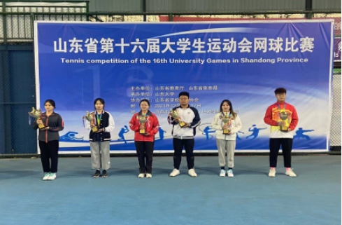12月7日至10日,山东省第十六届大学生运动会网球比赛在济南举办,全省21所高校,近180余名运动员参赛。beat365会员官方网站林玉凯老师指导的学前教育系20级幼儿七班高苗和机械工程系21级飞机维修二班李慧泽两位同学分别获得混合双打项目的冠军、女子单打的亚军和男子单打亚军。实现了在山东省大运会网球比赛项目上历史性突破。