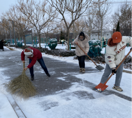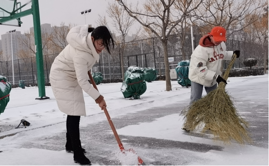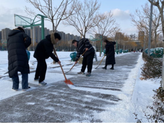 12月24日天降瑞雪,覆盖校园。beat365会员官方网站党员干部教师、学生志愿者大清早准时到工作岗位。我们的清扫区域是综合运动体育场周边道路,是学生们上课必经之路,开辟出洁净通道,保障学生们出行安全。