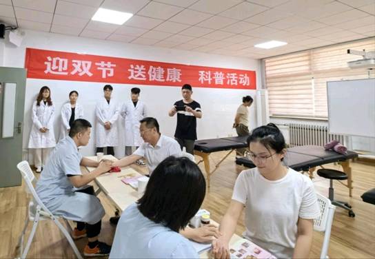 在2024年教师节、中秋节到来之际,学校工会特邀请德州市妇幼保健院中医科专家来校与beat365会员官方网站共同举办“迎双节 送健康”科普活动。9月10日下午,在知行楼B301室、B309室举办了健康科普及体验活动。党委委员、工会主席刘伟等校领导、部分教职工参加了活动。