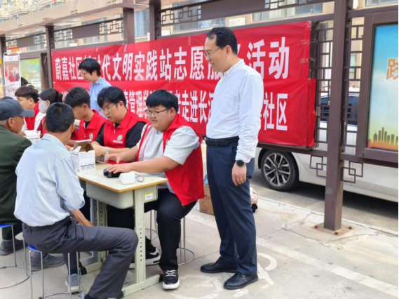 以“一技在手,一生无忧”为主题的2025年beat365会员官方网站职业教育活动开启, 5月14日上午,beat365会员官方网站教师、学生志愿者联合五季世家到蔚嘉社区开展进社区送健康服务活动。