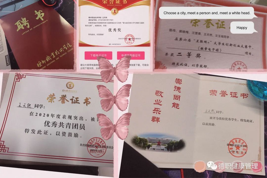上高中时常听老师说“上了大学你们就轻松了”,亲身经历过后,我想说在大学里,我们可以选择轻松或忙碌的生活方式,但最重要的是发现自己的长处,找到自己的热爱,明确自己的目标。青春就是不怕犯错,在这里我尝试了许多人生第一次,做了很多现在回想起可能很傻的蠢事,但正是这些经历让我成长,它们都是我人生的宝贵财富。一转眼,大学的旅程就要告一段落,感谢这三年帮助过我的师长,感谢给予我温暖与感动的同学,更要感谢我自己的努力,人生路漫漫,未来很长,梦还很远,希望我能一直保持对生活的热爱,对事物的好奇,继续跨过人生的一个个三年。最后祝福大家未来万事胜意,也祝愿德州职院越来越好!